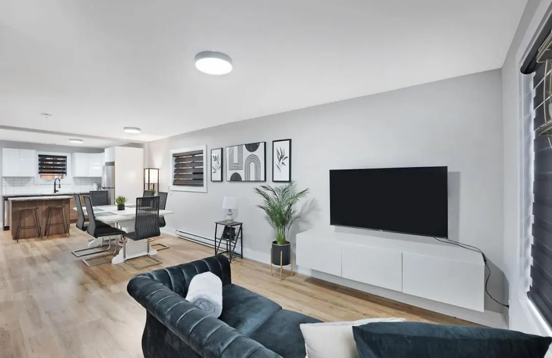 Welcome To Our Modern 2Bdrm,1Bth W, Laundry,Bbq apartment provides guests with a fully equipped kitchen, as well as such modern comforts as climate control and a washing machine.